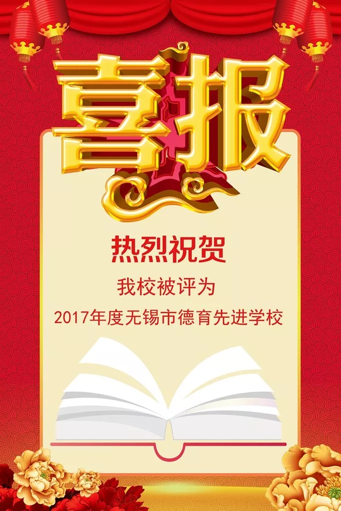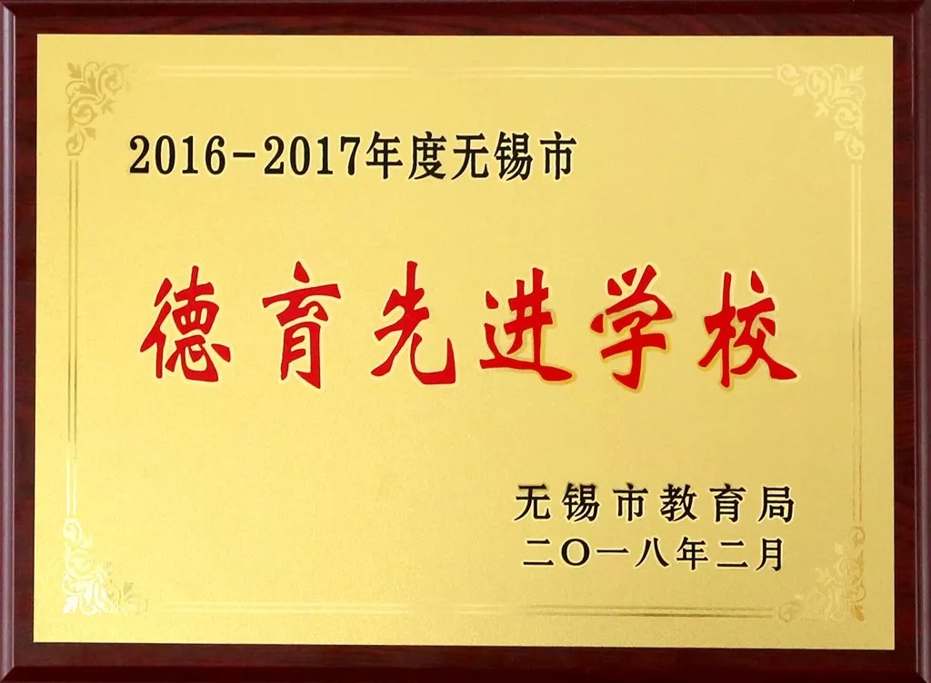 教育初心不改,一路繁花相送。近日,我校在全市教育系统组织的2016-2017年度无锡市德育先进学校的评审中脱颖而出,荣获“无锡市德育先进学校”的光荣称号。