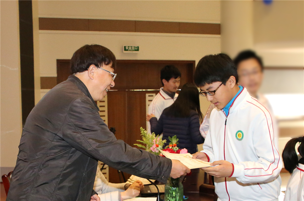 会上首先表彰了上学期在学业方面表现突出的优秀学生。其中薛婧雯等八十名同学荣获优秀奖,殷子尧等十四名同学荣获进步奖。田校长和姚校长为这些优秀同学颁发了奖状。