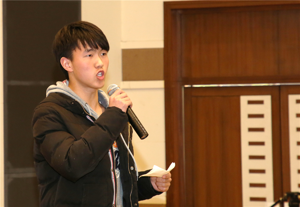 颁奖仪式后,学生代表初三(1)班女生薛婧雯和辅仁奖学金获得者、初三(4)班班长邹宇阳分别作了发言。