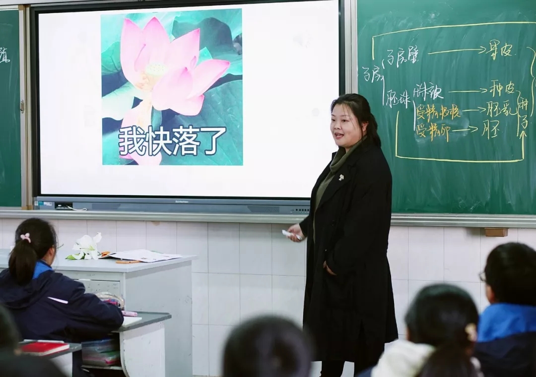 张云剑老师执教《植物的生殖》。她教学经验丰富、驾驭课堂娴熟、板书设计精当、内容选择合理,在与学生的平等交流中创设和谐的教学互动氛围。在评课环节,江苏省特级教师、正高级教师徐彤点评道:张老师积极探索多角度提升学生学科核心素养的方法和途径。生命观念方面,不仅选用了适量的植物有性生殖的精美图片、视频,还能现身说法将自己的种养记录与学生分享,使学生不断学会欣赏美、发现美。科学探究方面,能够循着有性生殖过程这条主线,抽丝剥茧,层层递进引导学生进行分析和认知。科学思维方面,注重从学生认知及生活实际出发,抓住核心概念的理解和形成。社会责任方面,通过列举生活中爱护公共资源、珍惜劳动成果等实例进行思维拓展,在实现学以致用的同时,提高学生的文明素养和社会责任担当。