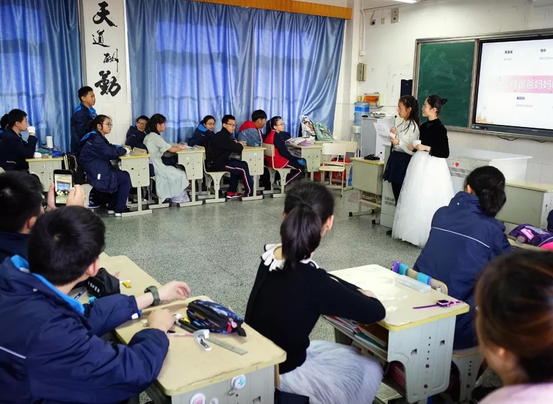 胡老师还认为,这堂班会结合青少年的特点,既有视频剪辑欣赏和小品表演,又有调查内容展示和家长现场发言,组织形式多样化,整个活动寓思想教育于生动活泼的形式之中。活动的最后,班主任通过总结提炼,教导学生学会感恩同学,感恩老师,感恩家长,感恩社会,让同学们收获到了珍贵的为人之道:常怀感恩之心,付出今日之行!