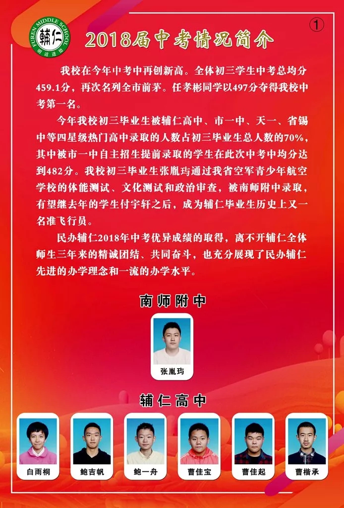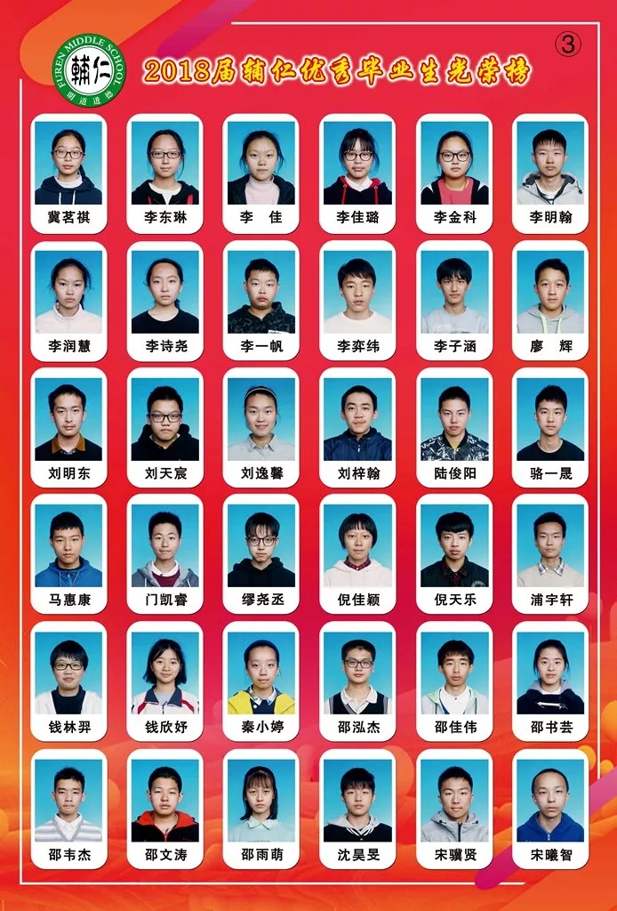 民办辅仁中学2018届优秀毕业生光荣榜